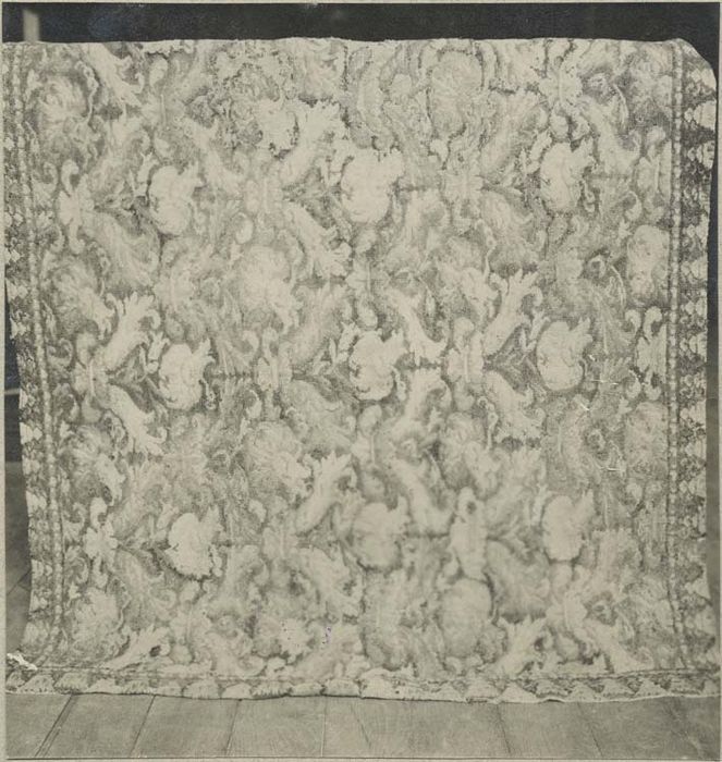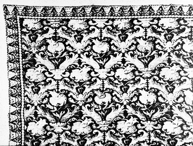 Décor de rinceaux et de fleurs disposés régulièrement. Bordure de 5 cm de largeur environ.