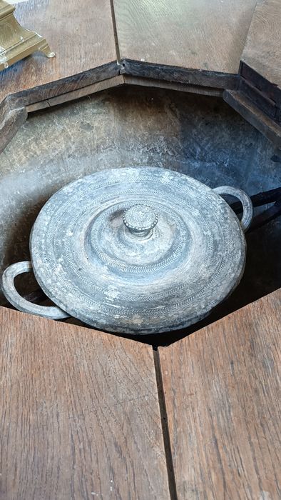 h=89 ; d=106 ; dimensions prises avec le couvercle ; dimensions de la réserve à eau bénite : h=15, d=40