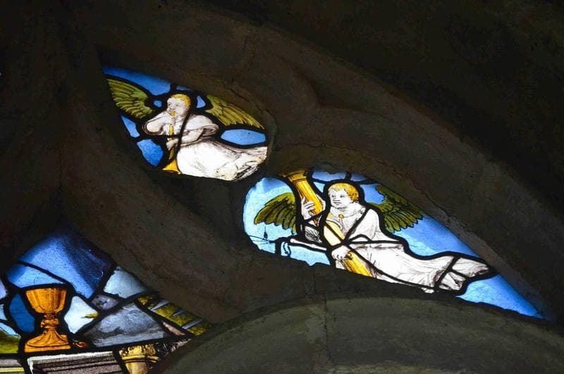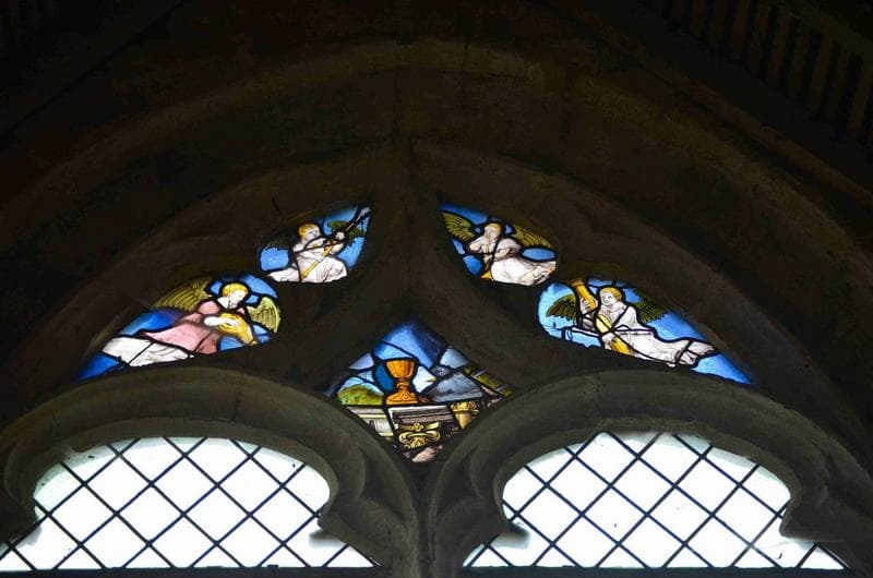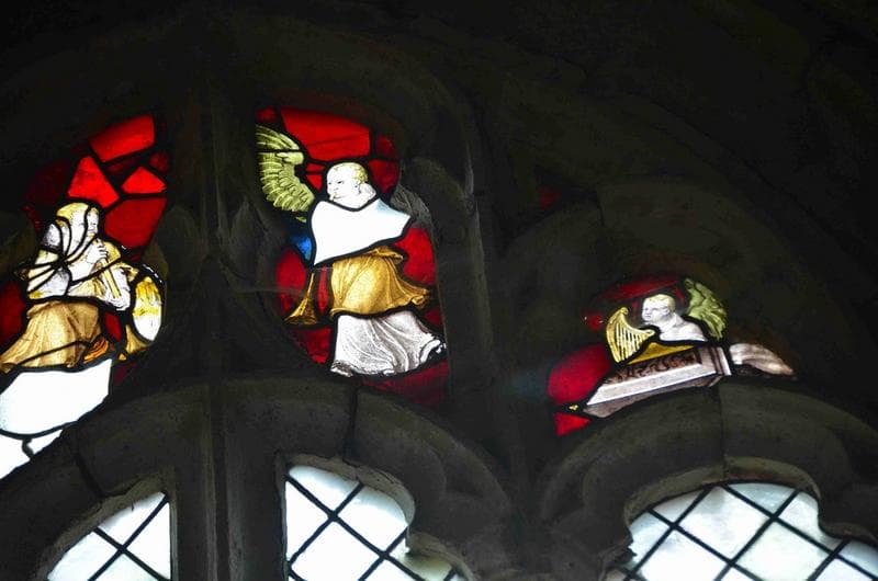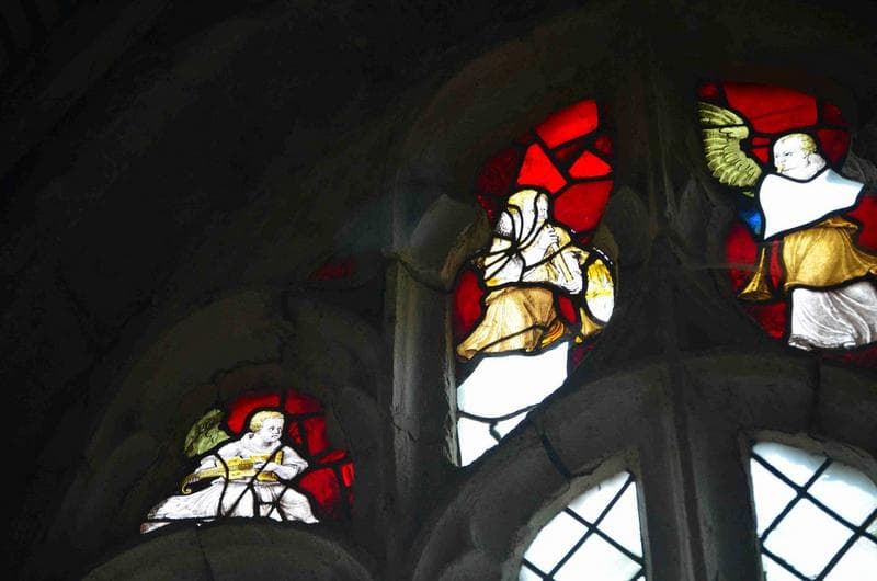 ensemble de 3 verrières (baies 7, 9, 11) : tympans avec fragments anciens