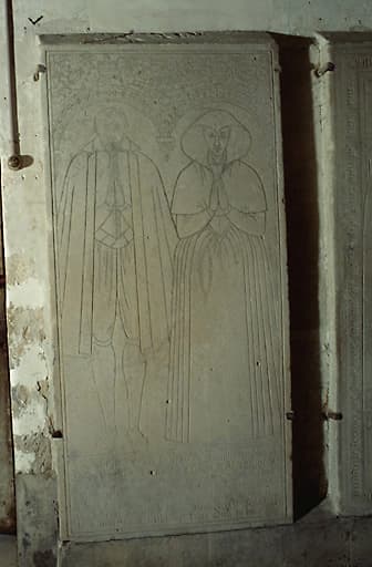 dalle funéraire à effigie gravée de Jonas de Lannoy et de Marguerite Budin