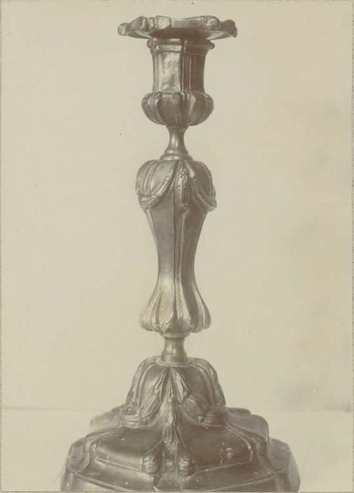 Un cliché de ces deux chandeliers du 18e siècle est conservé aux archives départementales de l'Oise, fonts Mansart de Sagonne, 11 Fi 149.