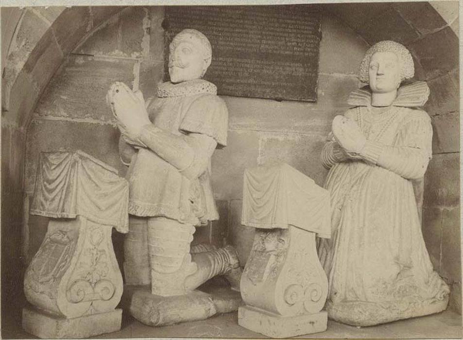 Liste départementale de 1978 : statues funéraires d'Adrien de Vignacourt et de Louise de Saint-Périer sa femme, pierre et marbre, 17e siècle.