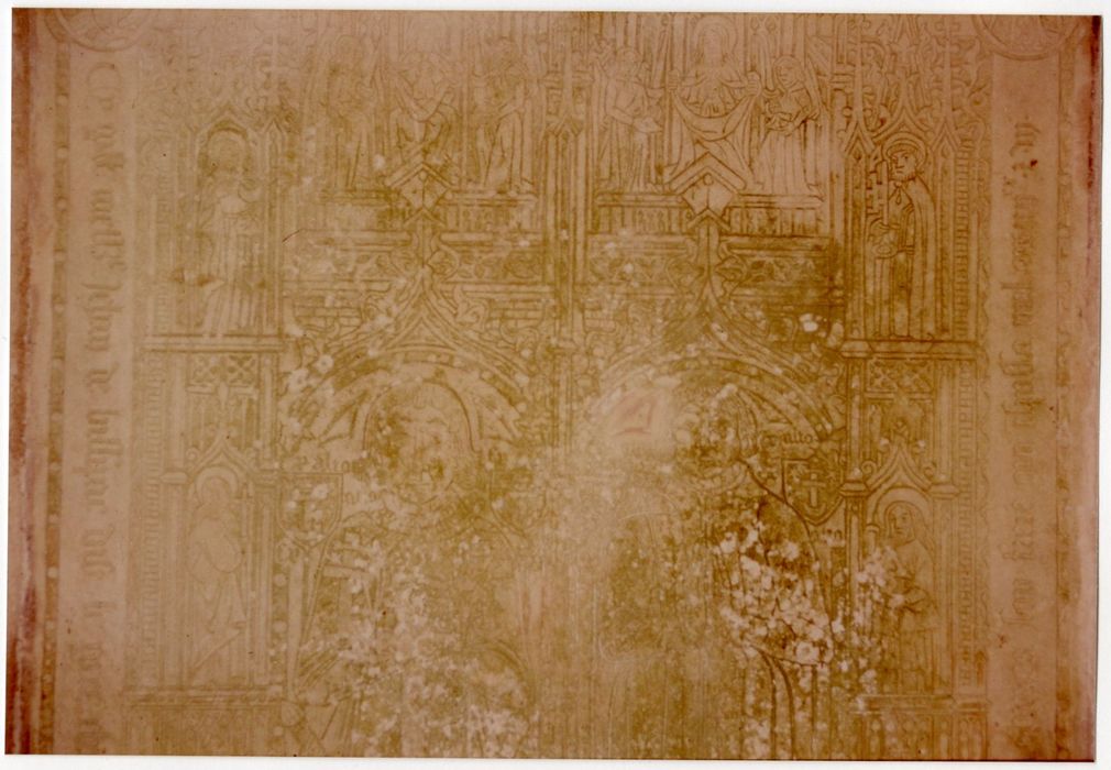 Liste départementale de 1978 : dalle funéraire à deux effigies gravées de Jean et Charles de Bissipat, morts en 1487 et 1496