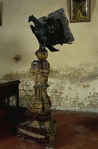 Cet aigle-lutrin datant du dernier quart du 18e siècle présente de grandes analogies structurelles et décoratives avec celui de la Rue-Saint-Pierre ainsi qu'avec celui de Loueuse (canton de Songeons) sans doute un peu plus anciens.