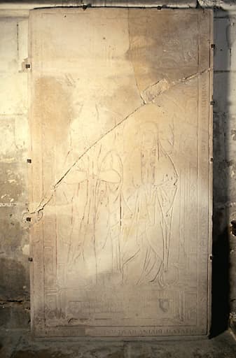 dalle funéraire à effigie gravée de Pierre Tristant et Jeanne Caron