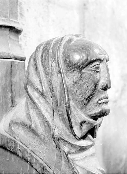 Les stalles sont composées d'éléments chronologiquement disparates. Les sièges doivent être datés du début du 16e siècle alors que les pupitres sont vraisemblablement un ajout du 18e siècle.