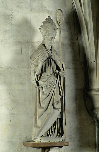 liste départementale de 1978 : un saint évêque (saint Nicolas ?), statue pierre, 16e siècle