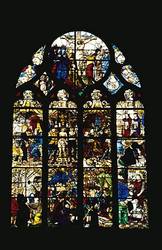 L'église renferme un ensemble de verrières homogènes datées des années 1540. Ces vitraux se situent dans le choeur reconstruit au 16e siècle en même temps que les bas-côtés de l'église. Le reste de l'édifice remonte au 12e siècle (nef et clocher). Les vitraux ont été restaurés à plusieurs reprises, notamment en 1921 par Dupleix et en 1948.