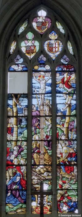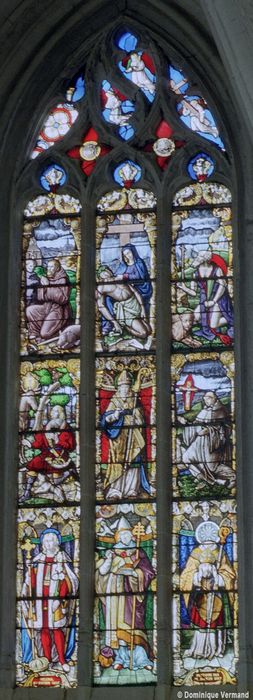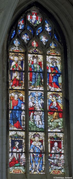 Les verrières du choeur ont été données en 1520 par Raoul de Lannoy, seigneur du lieu ; elles ont été fortement restaurées et recomposées en 1866-1867 par le verrier Bazin, dont l'atelier se situait au Mesnil-Saint-Firmin (Oise). Une remise en plombs a été réalisée en 1922. L'ensemble a été à nouveau restauré après les bombardements de 1940. Les verrières sont aujourd'hui presque entièrement modernes.