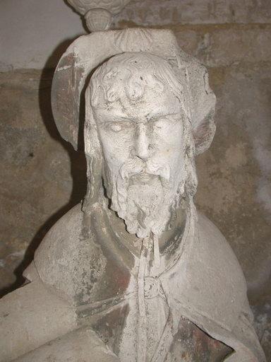 Le bâton de pèlerin a disparu. Il subsiste quelques traces de polychromie. La pierre est rongée.