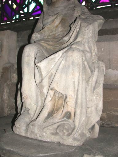 Liste départementale de 1978 : Vierge à l'Enfant, statue assise, pierre, 14e siècle (jardin du presbytère)