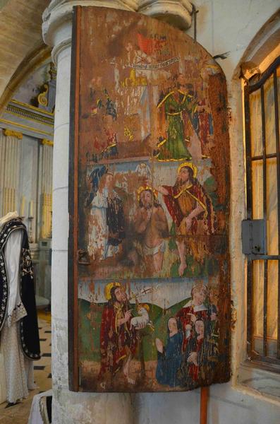 Liste départementale de 1978 : scènes de la vie de saint Jean, deux panneaux peints, fin du 15e siècle (porte d'armoires à gauche du choeur)
