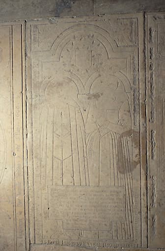 dalle funéraire à effigie gravée d'Etienne Dubief et de Barbe Lescrémier sa femme