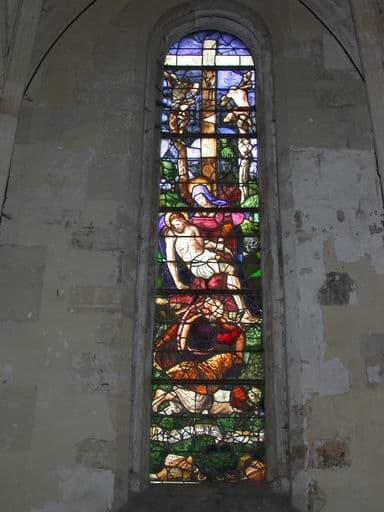 verrière figurée : Vierge de Pitié, Crucifixion