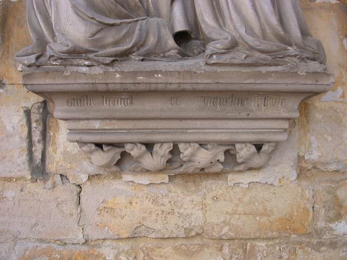 POP | Plateforme ouverte du patrimoinegroupe sculpté : Saint entre Guillaume et Jacqueline Brunel ou Les époux agenouillés sous la protection d'un saint patron (monument commémoratif)