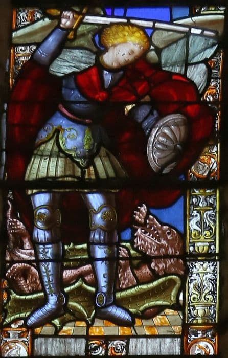 POP | Plateforme ouverte du patrimoineverrière (baie 0) : Vierge à l'Enfant, Vierge des litanies, Saint Michel, Sainte Barbe