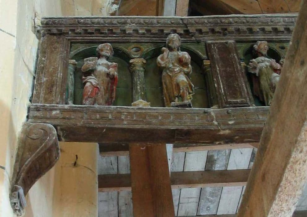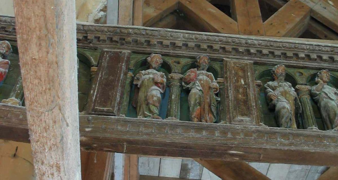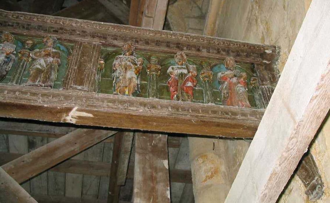 POP | Plateforme ouverte du patrimoinepoutre à logettes avec les statuettes des douze apôtres et le visage du Christ sur le linge de sainte Véronique
