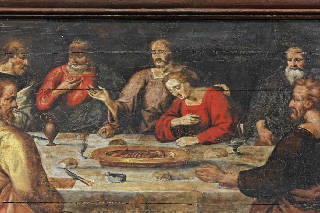 Peinture à rapprocher de l'école flamande. On retrouve une composition similaire dans plusieurs peintures de la fin du XVIe siècle ou du début du XVIIe siècle comme dans La Cène de Bar-sur-Seine dans l'Aube, datée XVIe siècle, dans celle de Trilport (Seine-et-Marne) de Bobrun début XVIe siècle ou encore dans celle signée Jean Senelle de la cathédrale de Meaux au milieu du XVIIe siècle.