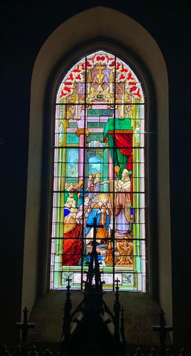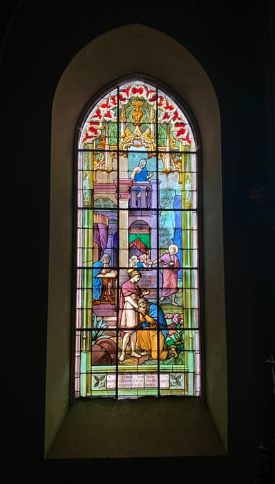 POP | Plateforme ouverte du patrimoineensemble de trois verrières (baies 0, 1, 2) : Sacre de saint Nicolas de Myre ; Sauvetage des matelots par saint Nicolas de Myre ; Miracle des trois bourses
