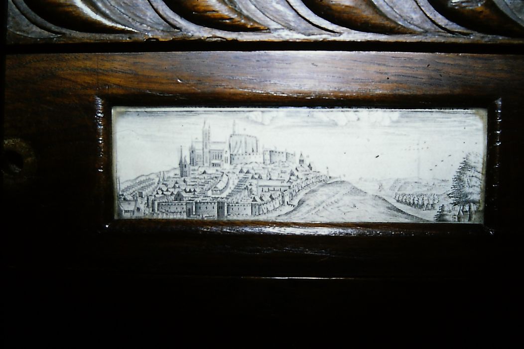 POP | Plateforme ouverte du patrimoinearmoire et trois estampes : Vues anciennes de Clermont ; Portrait de femme