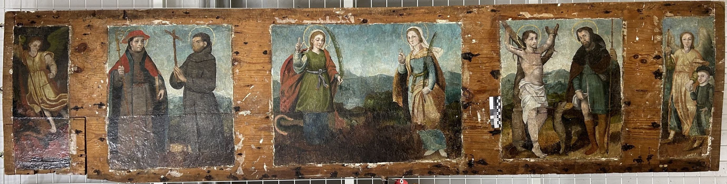 six tableaux : Effigies de saints et de saintes, ange