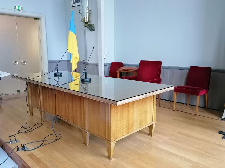 Ensemble mobilier de la Salle des mariages de l'hôtel de ville : un bureau, un fauteuil pour le maire, deux fauteuils pour les mariés, deux chaises pour les adjoints, cinq chaises pour la famille et quatorze banquettes.