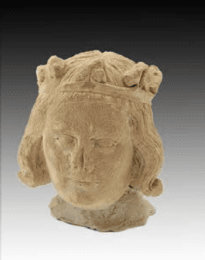 Le buste de Saint Louis (PM60005238), la tête de Philippe le Bel (PM60005237) et celle de Marguerite de Provence ou de Jeanne de Navarre (PM60005236) ont été fortuitement mis au jour en 1995 lors de travaux menés sur le site de l'ancien prieuré royal de Royaullieu à Compiègne. La date de fondation du prieuré, 1308, peut être définie comme terminus post quem pour la datation des statues, ce qui autorise in fine à les reconnaître comme étant les effigies de saint Louis, patron de l'église, Philippe le Bel, fondateur, et Marguerite de Provence, épouse de Louis IX, à moins qu'il ne s'agisse de Jeanne de Navarre, épouse de Philippe le Bel. L'analyse stylistique borne au plus tard vers 1320. La localisation précise des statues dans le prieuré avant leur mutilation n'est pas identifiée. Celles-ci ont vraisemblablement été brisées lors de la Révolution et leurs vestiges dissimulés. Production parisienne ou influencée par l'art des ateliers royaux. En 1303, Philippe le Bel cède aux instances de son aumônier Jean des Granges, frère de Sainte-Catherine du Val-des-Ecoliers à Paris. Il fonde alors un prieuré contigu à sa demeure de La Neuville-aux-Bois près de Compiègne. De nouvelles lettres de fondation sont données en 1308. L'église priorale est dédiée à saint Louis et, en son honneur, le lieu est rebaptisé Royallieu [
