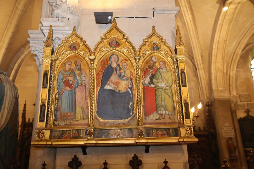 Tableau (triptyque) : Vierge à l'Enfant entourée de saints