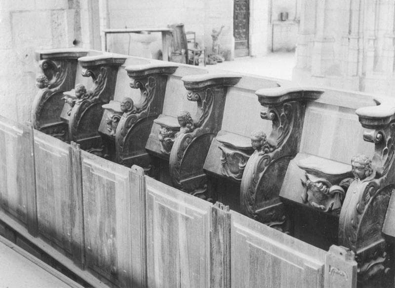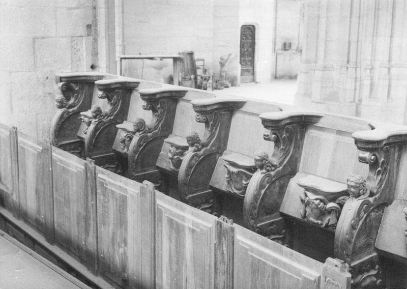 Ces stalles se répartissent en 10 de chaque côté du choeur, avec accoudoirs et miséricordes sculptés.