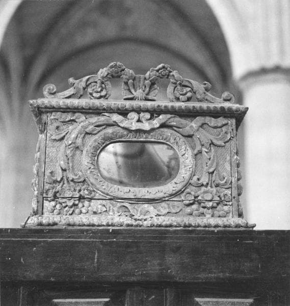 Ces reliquaires, dont trois sur quatre ont été conservés, se présentent sous la forme d'un coffre en bois jadis doré, avec une vitre latérale enchâssée dans un ovale, et entouré de rinceaux et de chutes de fruits ; les petits côtés sont ornés de fleurs et de palmettes.