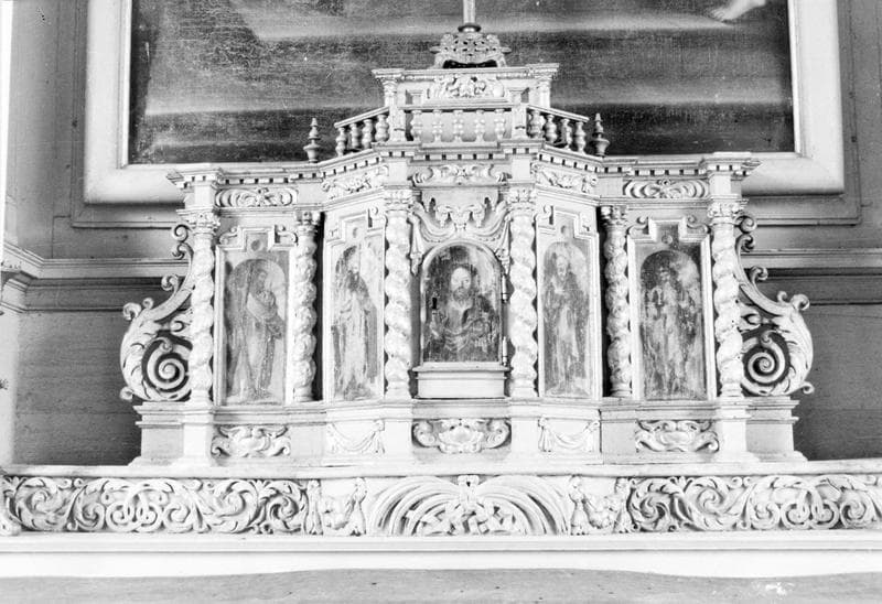 gradin et tabernacle du maître-autel, 5 tableaux (panneaux peints) : Le Christ, Saint Pierre, Saint Jacques, Saint Paul, Saint André