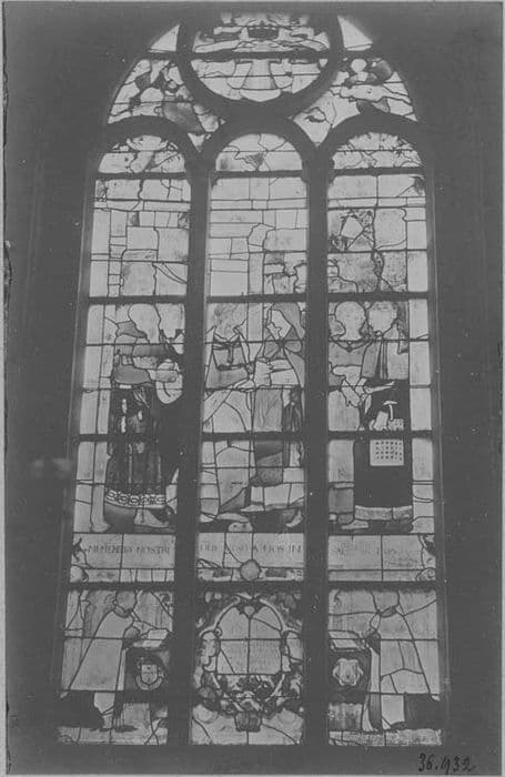 Fenêtre à trois travées plein-cintre représentant la rencontre de la Vierge et d'Elisabeth, avec quatre personnages secondaires. Au-dessous, de chaque côté d'un cartouche, sont représentés deux chanoines de Chartres, à genoux devant un prie-Dieu. Dans l'ajour central se trouvent deux anges portant un écusson avec une dalmatique. Les ajours latéraux sont ornés d'anges musiciens.