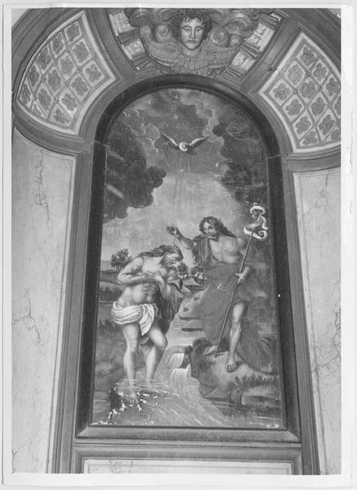 retable des fonts baptismaux : Baptême du Christ