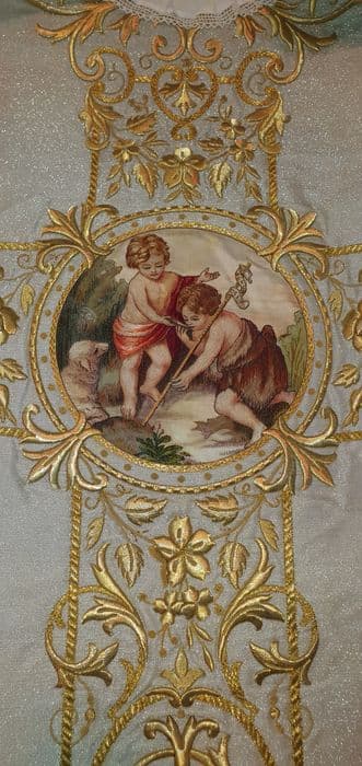 matériau textile : brodé, moiré ; fil métal (or, argent)
