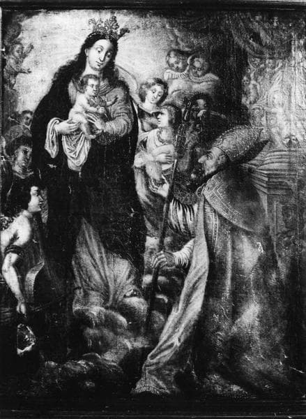 tableau : saint Augustin et la Vierge à l'Enfant entourée d'anges