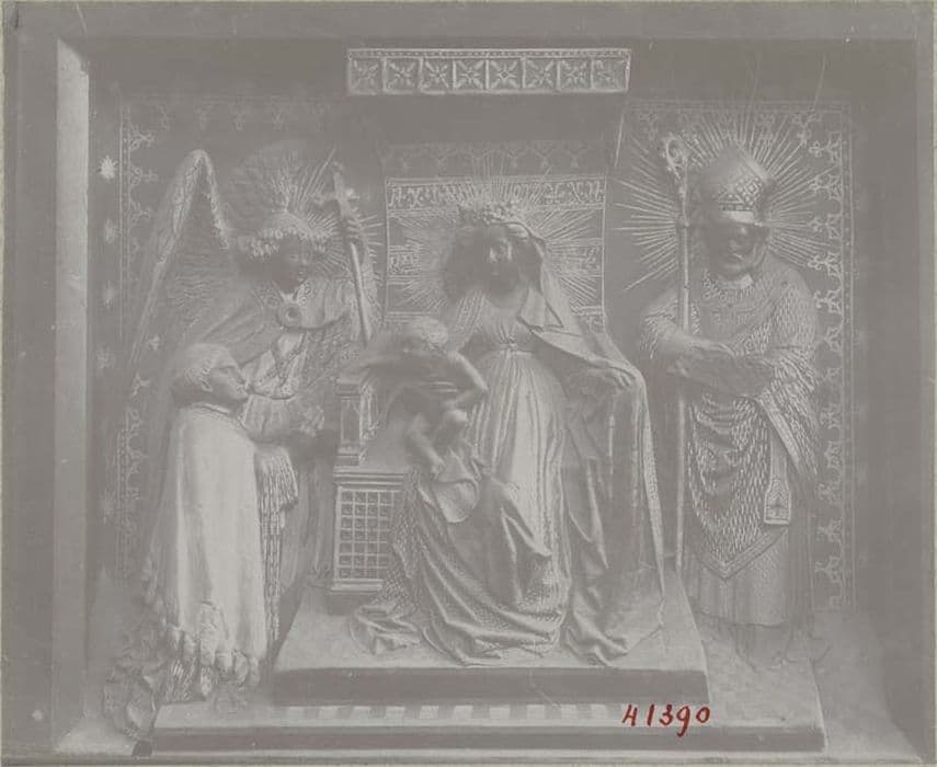 monument funéraire : Vierge à l'Enfant assise le donateur et l'archange saint Michel un saint évêque