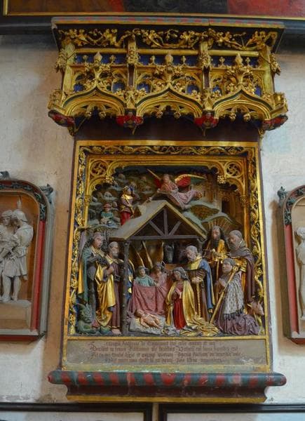 monument funéraire d'Antoine de Tramecourt : Nativité le donateur accompagné de saint Antoine et trois saints (la)