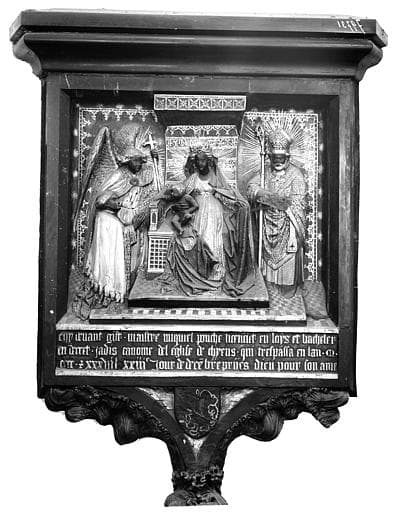 POP | Plateforme ouverte du patrimoinemonument funéraire de Michel Ponche (bas-relief) : Vierge à l'Enfant le donateur accompagné de saint Michel