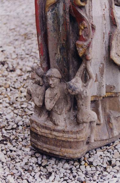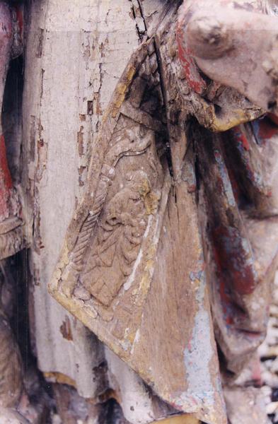 Traces de dorure et de polychromie. Ecaillage de la polychromie