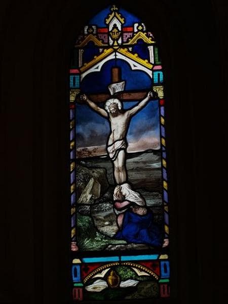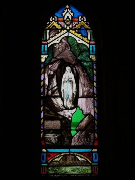 Ensemble de 2 verrières figurées : Immaculée Conception ; Marie-Madeleine au pied de la croix