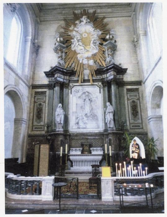 Dans le transept nord. Au centre du retable, bas-relief ; statues sur les côtés.