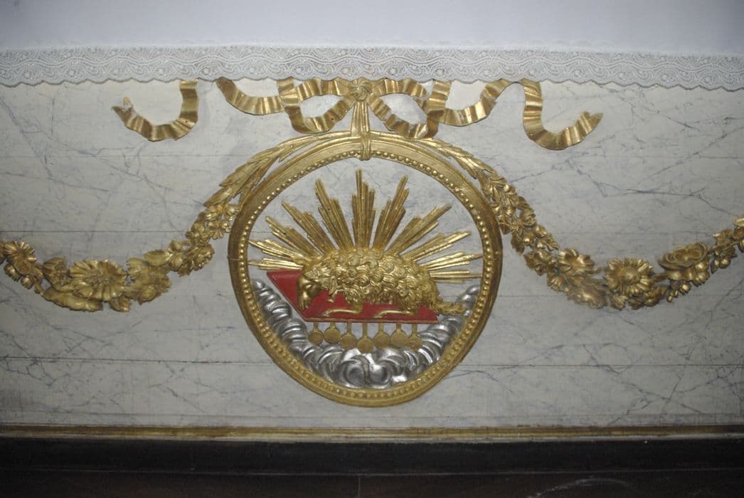Autel en bois peint imitation marbre et rehaussé de dorure.