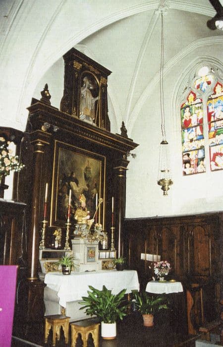 autel de Saint-Eloi avec son tabernacle, son retable et son tableau : Apparition de saint Eloi aux Charitables, buste de Saint Eloi cantonné par deux Angelots, la statue de Saint Eloi et quatre chandeliers