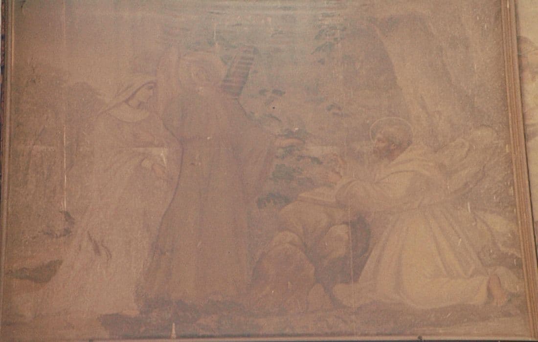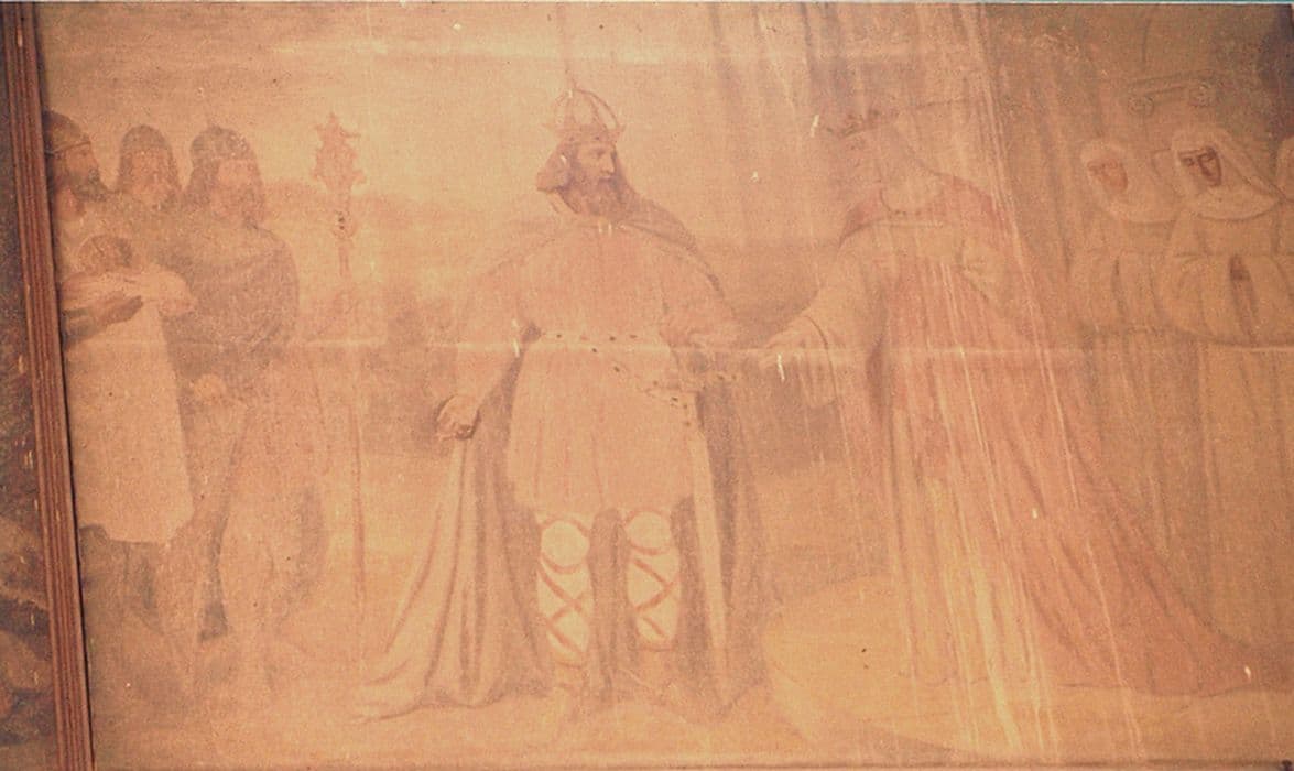 deux tableaux : Charlemagne rend visite à sainte Isbergue et Sainte Isbergue reçoit de saint Venant le conseil de se consacrer à Dieu