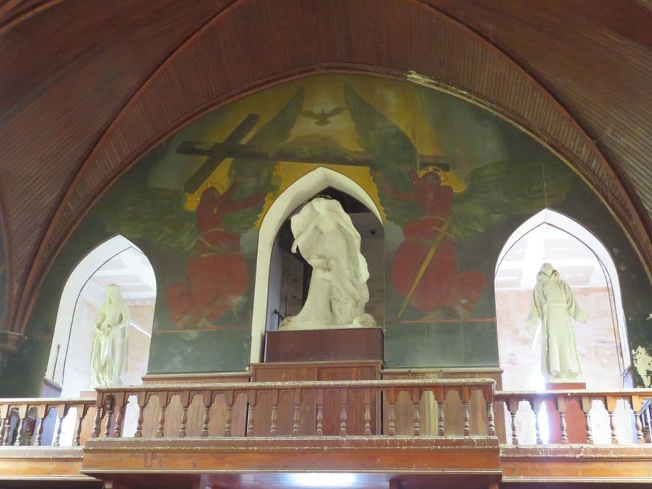 trois statues : Sainte Elisabeth de Hongrie, Saint François d'Assise, Vierge de Miséricorde