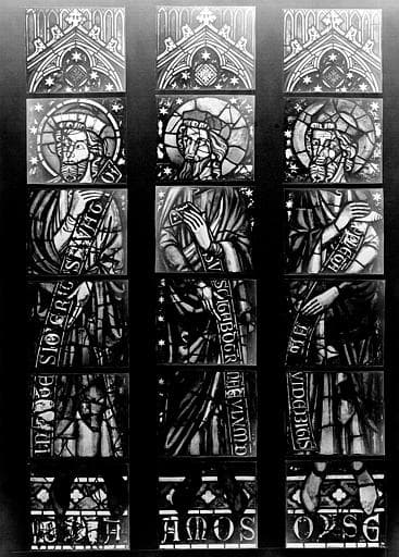 Un des deux vitraux déposés représente le Christ avec une sainte femme.