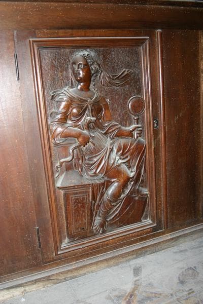 Ornant des portes de placard dans la chapelle des fonts baptismaux.