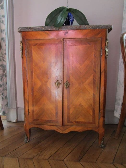 bois de rose ; bronze : ciselé, doré ; marbre