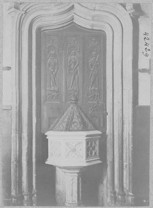 porte surmontant les fonts baptismaux