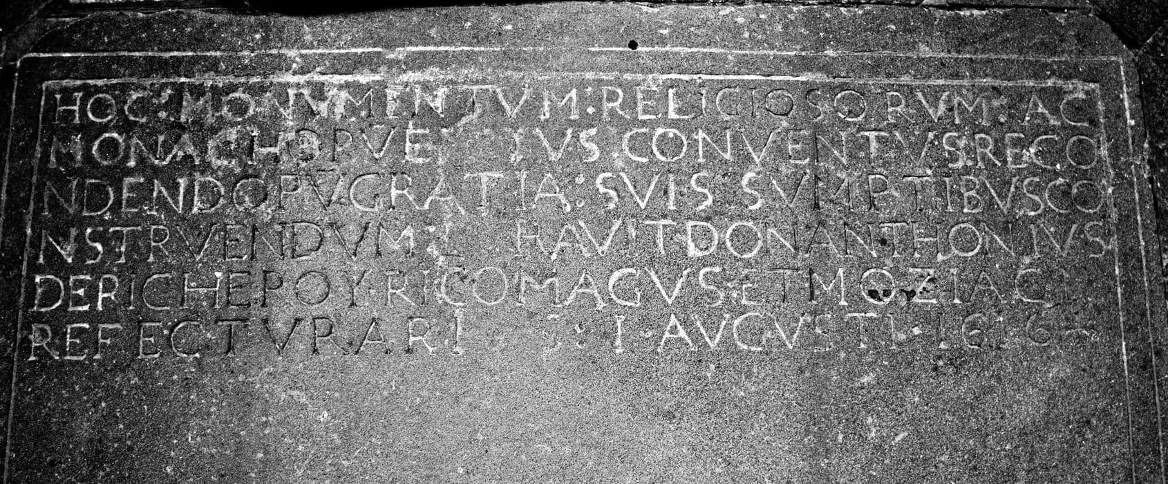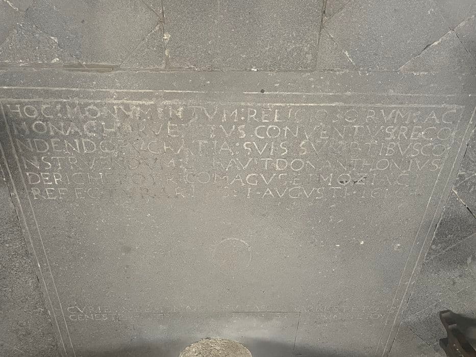 Cette inscription est gravée sur une grande dalle à l'entrée du sanctuaire. Les pas l'ont en partie effacée sur la ligne médiane.
